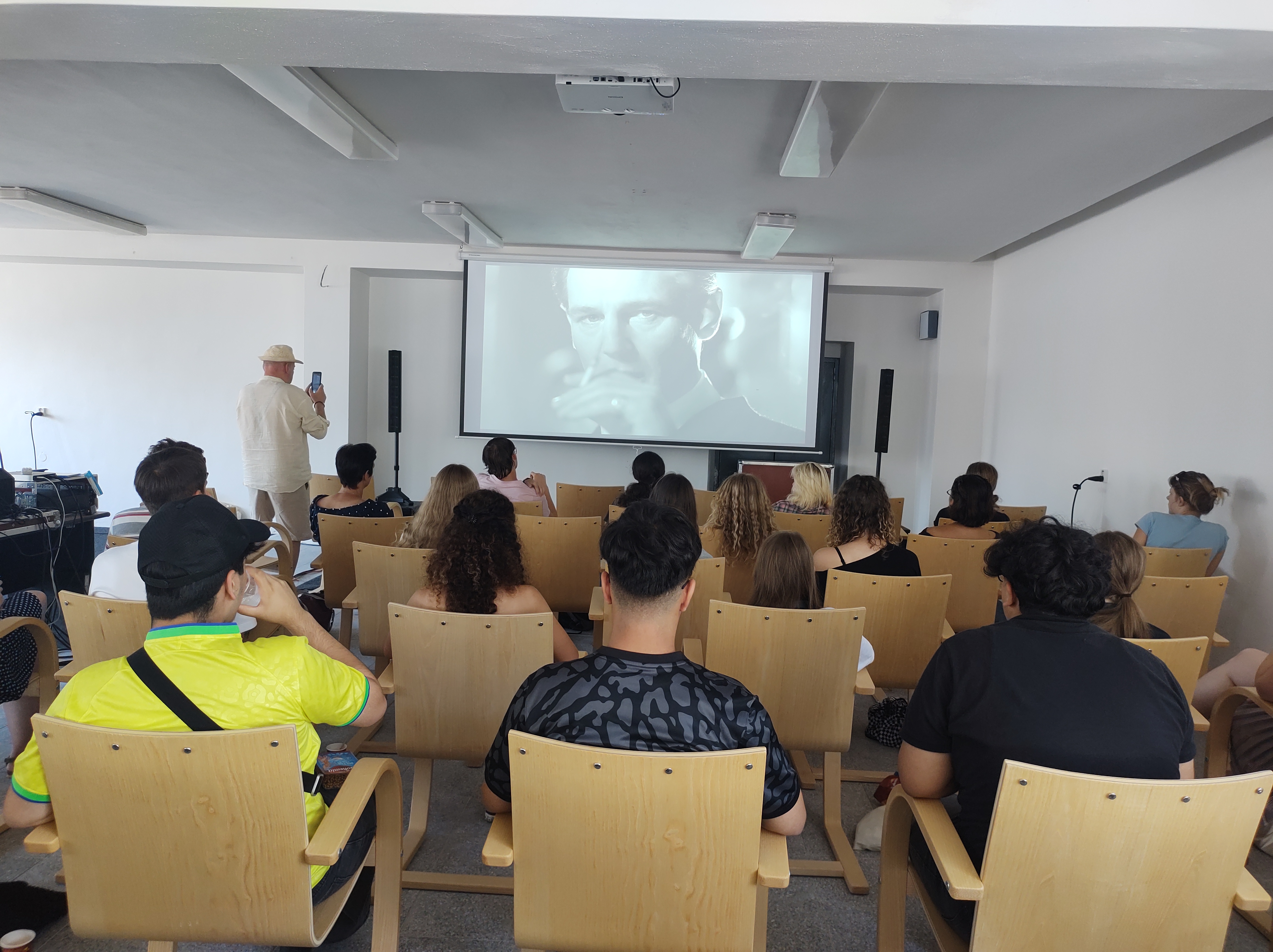 Promítání Schindlerova seznamu v muzeu Schindlerova Archa v Brněnci, Velbloud 2024.