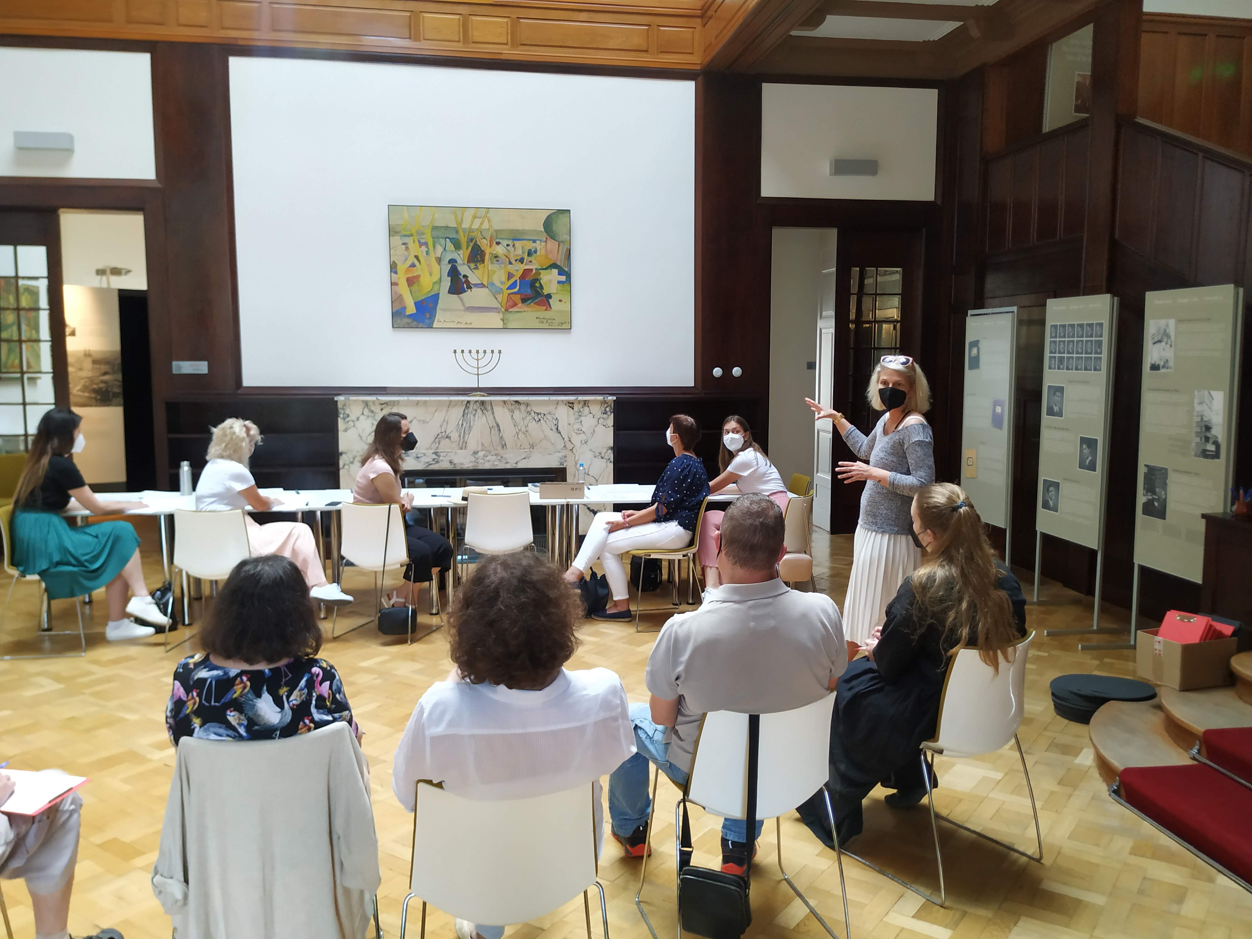 Táňa Klementová leads a workshop for Czech students at the European School in Brussels, 2023.